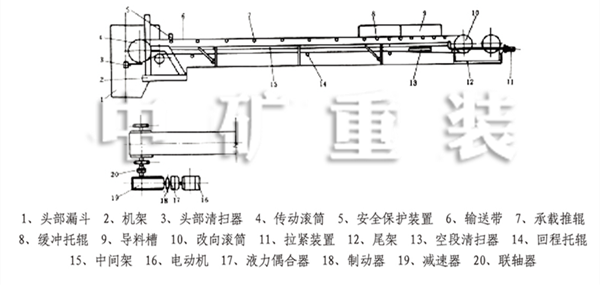 4-1、帶式輸送機可以用于水平或者傾斜輸送,可以傾斜向上,也可以傾斜向下,其典型布置形式參照圖4-1。